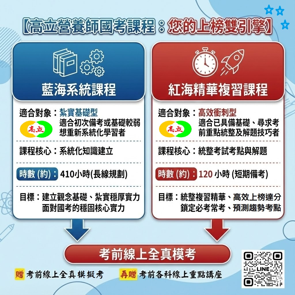 優惠中~考116年營養師 藍海/ 紅海 雙軌雙引擎課程